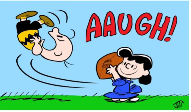 According to Google AI, in the Peanuts comic strip, Lucy always pulls away the football Charlie is trying to kick.